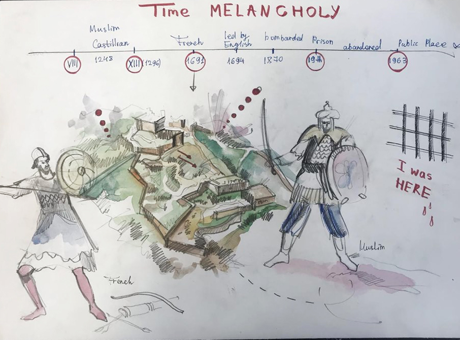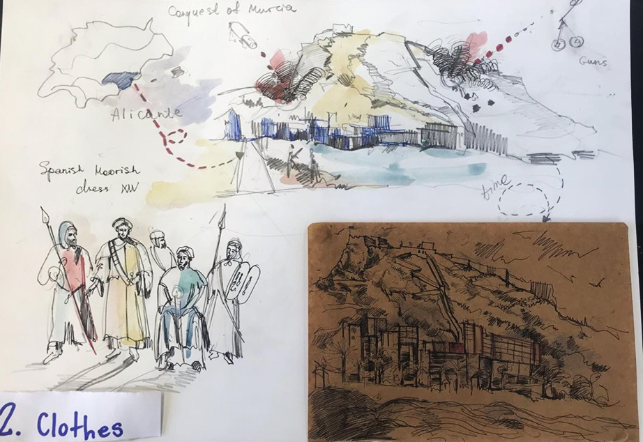 Main idea of this project is TIME and MELANCHOLY that’s why i decided to make scale of the clothes. I can say that clothe tells us about people about history behind it it’s a lot of things that we can understand. By the time everything is changing (small, sound, clothes,people, behaves, habits, traditions and etc) From this scale i wanted to understand what changed by the time and by the time what kind of clothe people were wearing. For example in the first picture there is Santa Barbara Castle from Arabic period ( below it is also Santa Barbara Castle how it looks like nowadays) and also Spanish Moorishs’ from Arabic period in the next picture i tried to understand different period of the time and not only Arabic period there are people from XIII , XX centuries so i think that main part of the history is people they when trow a lot of periods such as war, conquers and clothe represents all these periods so that’s why from my scale i wanted to bring some melancholy and make history more understandable and deep with feelings.