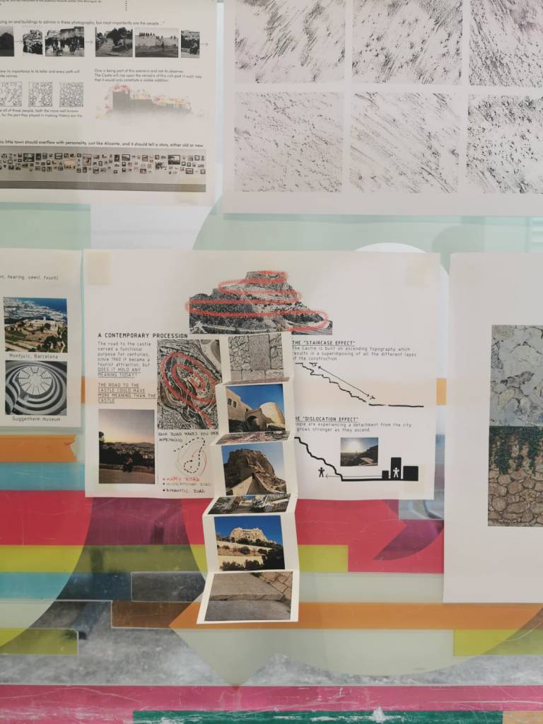 Our visit to the Castillo de Santa Barbara led to investigating the site on different scales: a city/neighbourhood scale, site scale, human scale, and texture scale. We investigated ideas such as the significance of the castle to the city of Alicante and what the city would be like if it didn’t exist, the importance of procession leading up to the castle, the different stories that make up the history of the castle, and an investigation into the different textures that can be seen when exploring the site.